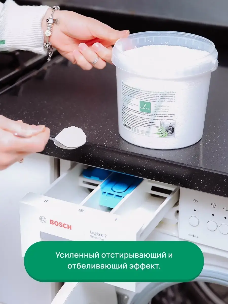 Инновационный биоразлагаемый стиральный порошок на основе кокосового мыла для ручной стирки и стиральной машины автомат. Содержит активную формулу перкарбоната натрия, направленную на щадящее и в тоже время эффективное удаление пятен. Универсальный подходит для белого, цветного и черного белья. Из хлопковых, льняных, синтетических и волокон. Кроме шерсти, щелка и деликатных тканей. Порошковый эко очиститель не воздействует на кожу и лицо, избавляет от запаха табака, загрязнений от шоколада, кофе. Пота, вина, травы, крови. Яркость и новизна цвета изделий сохраняется, можно применять совместно с ополаскивателем. Полное отсутствие фосфатов в гранулах обеспечивает его безопасность и безвредность чувствительной детской кожи. Поэтому он гиппоаллергенный и его можно использовать для очищения вещей для новорожденных. Экологичный концентратор быстро растворяется, не оставляя следов на одежде. Биоформула с энзимами эффективно удаляет не только въевшуюся грязь, но и выводит трудновыводимые пятна, и борется с бактериями. Экономичное применение концентрированного чудо порошка за счет большого содержания натуральных ПАВ растительного происхождения в составе. Разработано для сушки в закрытых помещениях, не имеет запаха. В составе отсутствуют синтетические отдушки, искусственные красители и хлор. Такая бытовая химия заслужила уважение среди хозяйственных товаров для дома.